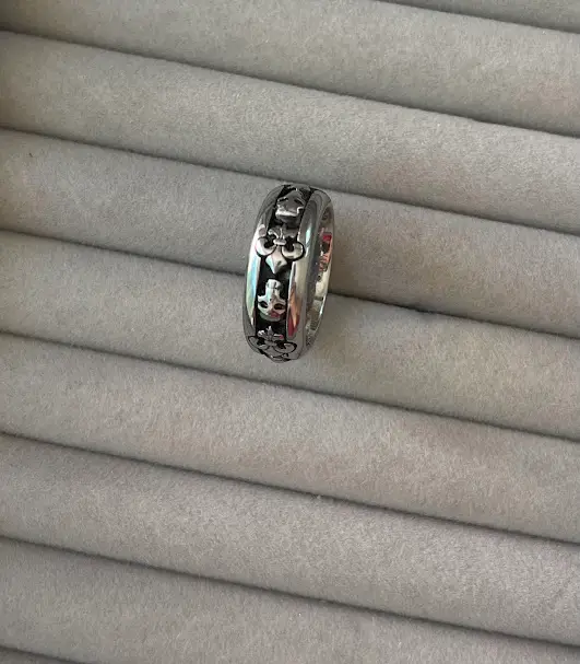 Anel Masculino em Aço Inoxidável com Detalhes em Flor-de-Lis