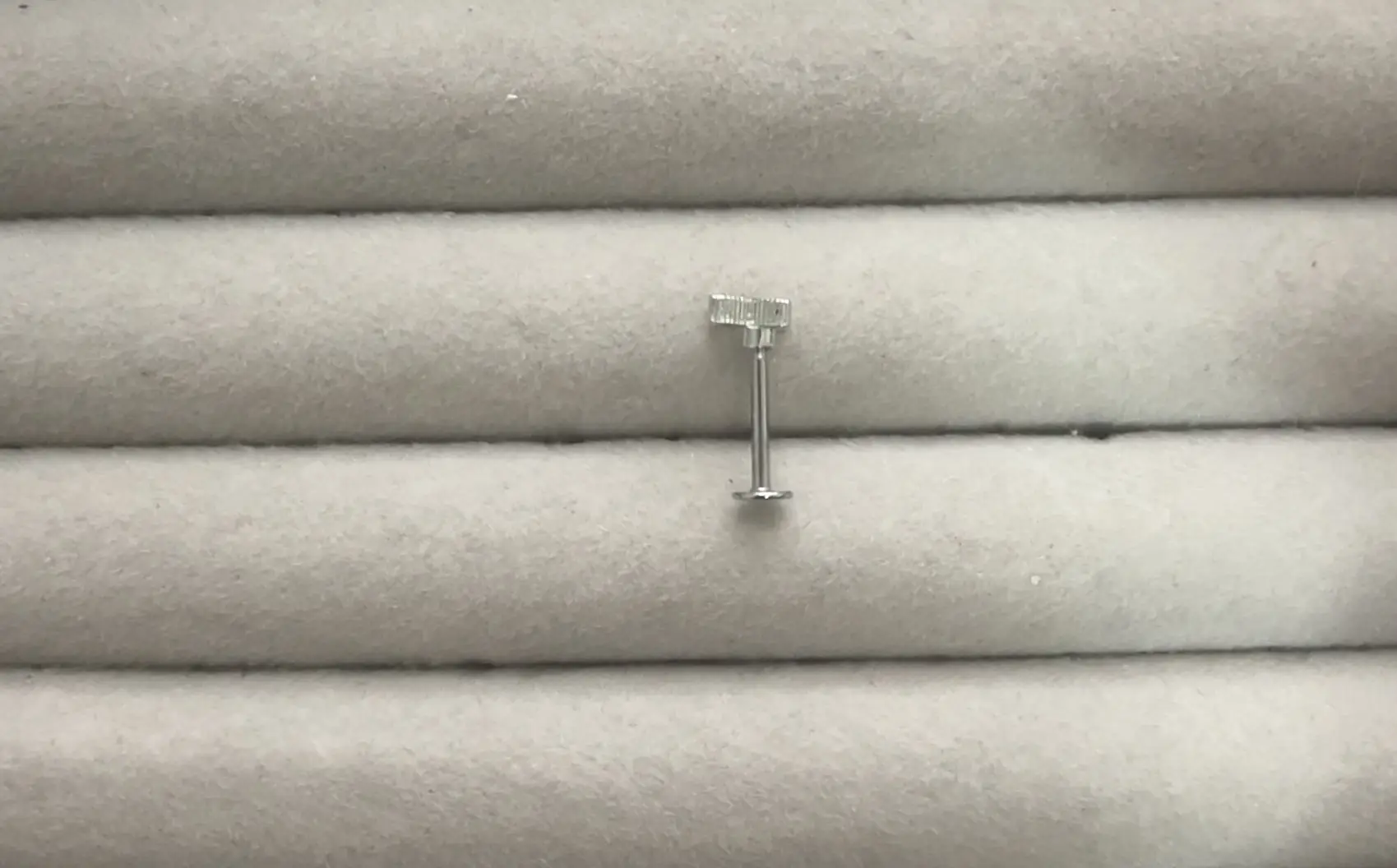 Delicado e resistente, este piercing é confeccionado em aço inoxidável cirúrgico de alta qualidade, oferecendo segurança, conforto e durabilidade. Possui design moderno com detalhe retangular facetado, que proporciona um brilho sutil e elegante.