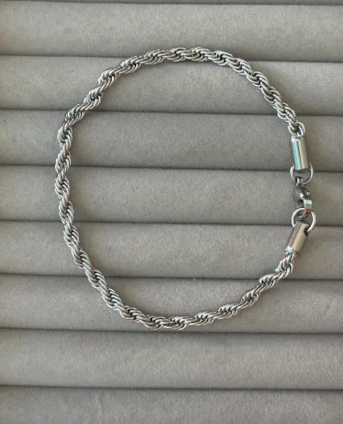 Sofisticada e resistente, esta pulseira é produzida em aço inoxidável de alta qualidade, garantindo durabilidade e brilho que não se perde com o tempo. Seu design trançado estilo corda transmite elegância e modernidade, perfeita para uso diário ou ocasiões especiais. Resistente à oxidação, não escurece e mantém seu acabamento impecável, combinando perfeitamente com diferentes estilos e acessórios.